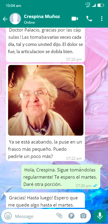 Todo es gracias al médico que ama a sus pacientes y no los abandona y tampoco saca dinero de ellos como la mayoría de los médicos. ¡Le estoy muy agradecida!"